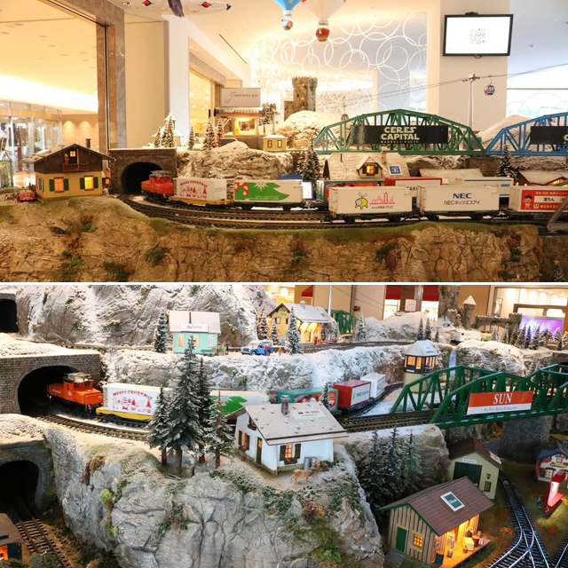 訪れた人が思わず足を止めてしまうほど壮大なスケールの展示は、総面積約60m2にもなるそう。冬のヨーロッパの山々を走るカラフルな列車、クリスマスムードに包まれた街並み、そこで暮らす人々の様子が、精巧なジオラマで生き生きと表現されていて、ついじっくりと見入ってしまう魅力が詰まっています。このイベントは2000年からスタートし、チャリティー活動の一環としても知られています。期間中に寄せられた協賛金や寄付金は、NPO法人などの団体に寄付され、社会貢献にもつながっています。