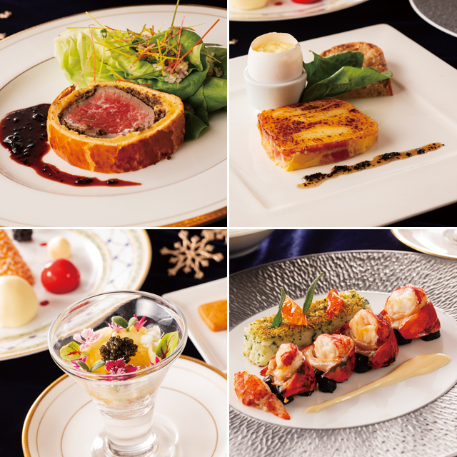 東京ベイ舞浜ホテル ファーストリゾートの9階にある「スカイレストラン サンセット」では、12月23日(火)から12月25日(木)までの3日間限定で「クリスマスプレミアムディナー」を提供します。キャビアを添えた前菜に始まり、殻ごとローストしたオマール海老や、旨みが凝縮された国産牛など、本格的なフレンチをコース仕立てで堪能できます。クリスマスツリーに見立てたデザートも楽しみのひとつ。ホテル最上階からの夜景を望みながら、ロマンティックなクリスマスを過ごして。